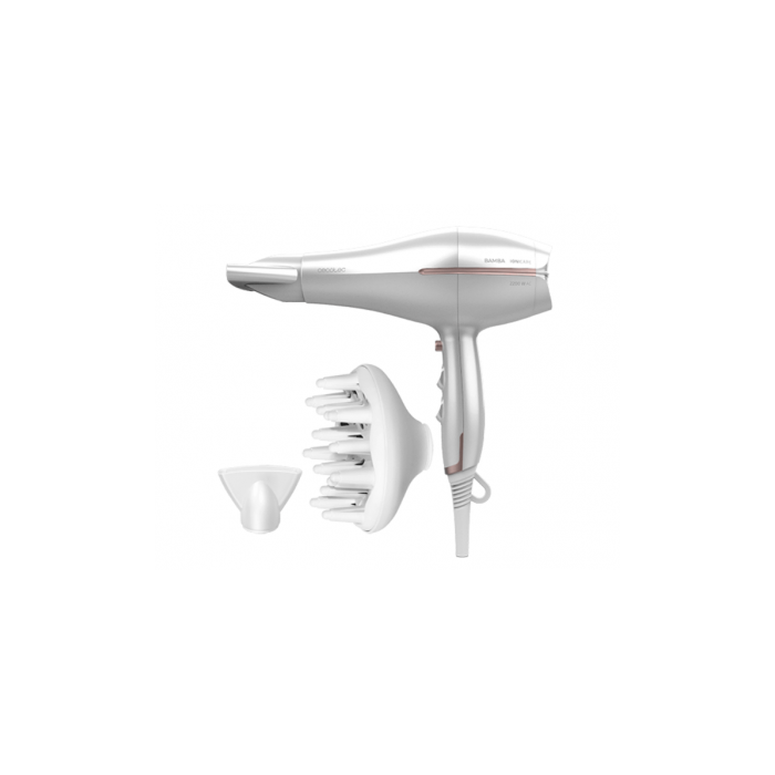 Сешоар Bamba Ionicare 5300 Maxi aura на испанският бранд Cecotec e с мощен и професионален двигател 2200 W за бързо и равномерно изсушаване на косата.